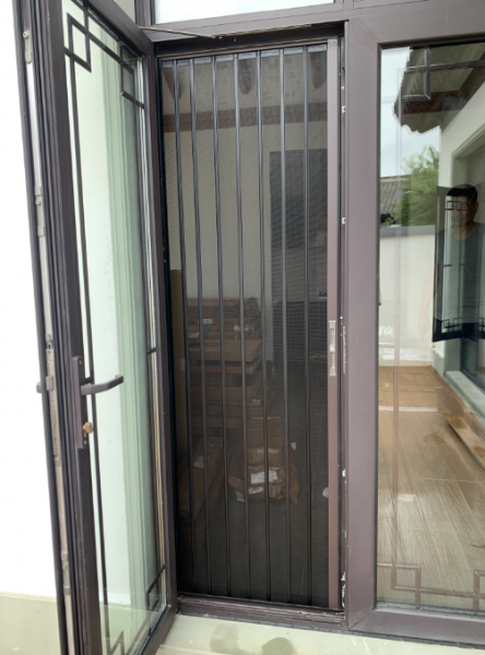 大连旅顺春风十里金刚网纱门纱窗安装现场,外开窗专业口袋锁纱窗,网丝采用304高透纱网,框架全铝型材;金刚网折叠纱门,采用高透一体网片,全铝型材框架,结实耐用,大...